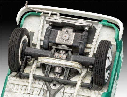 Anspruchsvoller, vielteiliger Modellbausatz des VW T1 Bus. Der T1 wird bis heute als Symbol für die Wirtschaftswunderzeit angesehen.