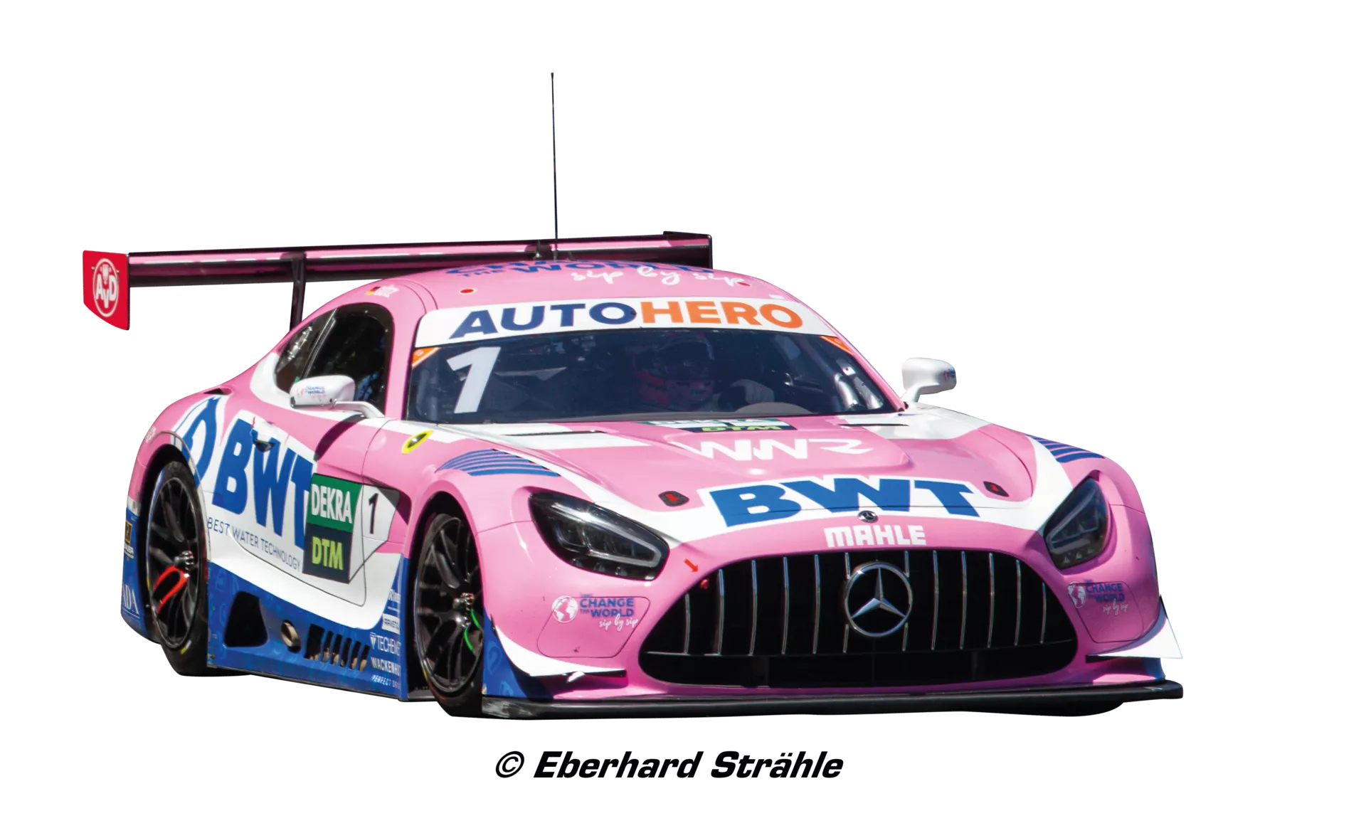 Der Mercedes AMG GT3 Evo ist ein moderner Klassiker des Tourenwagen-Rennsports. Der Carrera EVOLUTION Mercedes-AMG GT3 Evo „Mercedes-AMG Team Winward M. Götz” ist das aktuelle Fahrzeug des DTM-Meisters von 2021 Maximillian Götz. Der Meister ging mit dem neuen Fahrzeug und neuem Team in den Farben rosa-weiß-blau auch bei der DTM-Saison 2022 an den Start, konnte jedoch nicht an das Hoch aus der Vorsaison anknüpfen.
