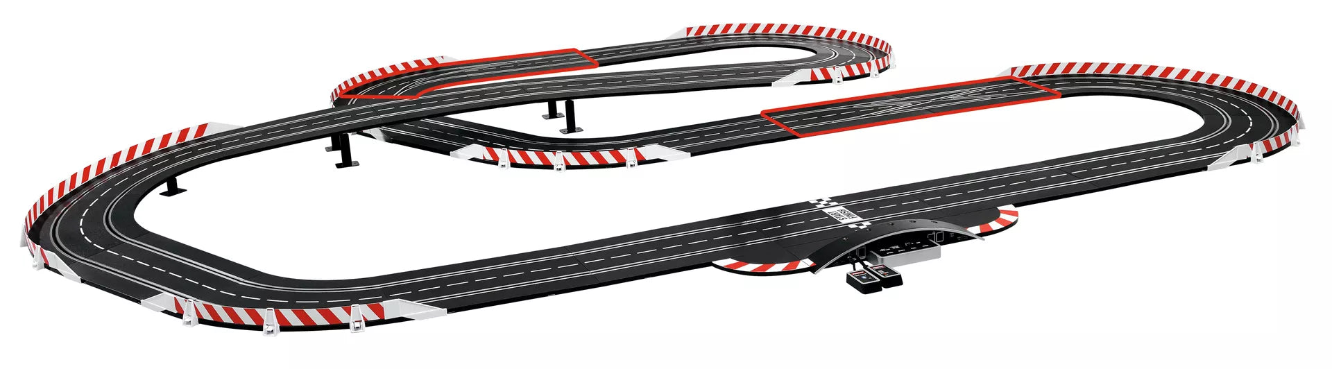 Über die 9,3 Meter lange Rennstrecke kannst du auf Knopfdruck die Spur wechseln oder überholen, dazu können Geschwindigkeit und Bremswirkung für jedes Fahrzeug einzeln eingestellt und so deinem Können individuell angepasst werden. Die Fahrzeuge besitzen funktionstüchtige Front-, Rück- und Bremslichter.