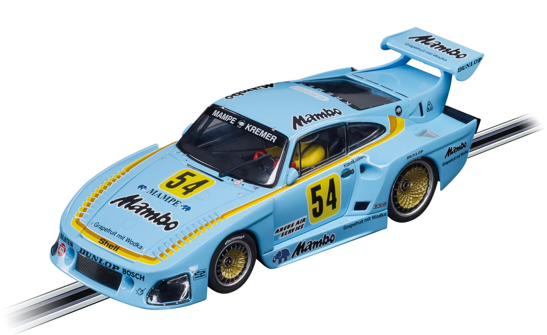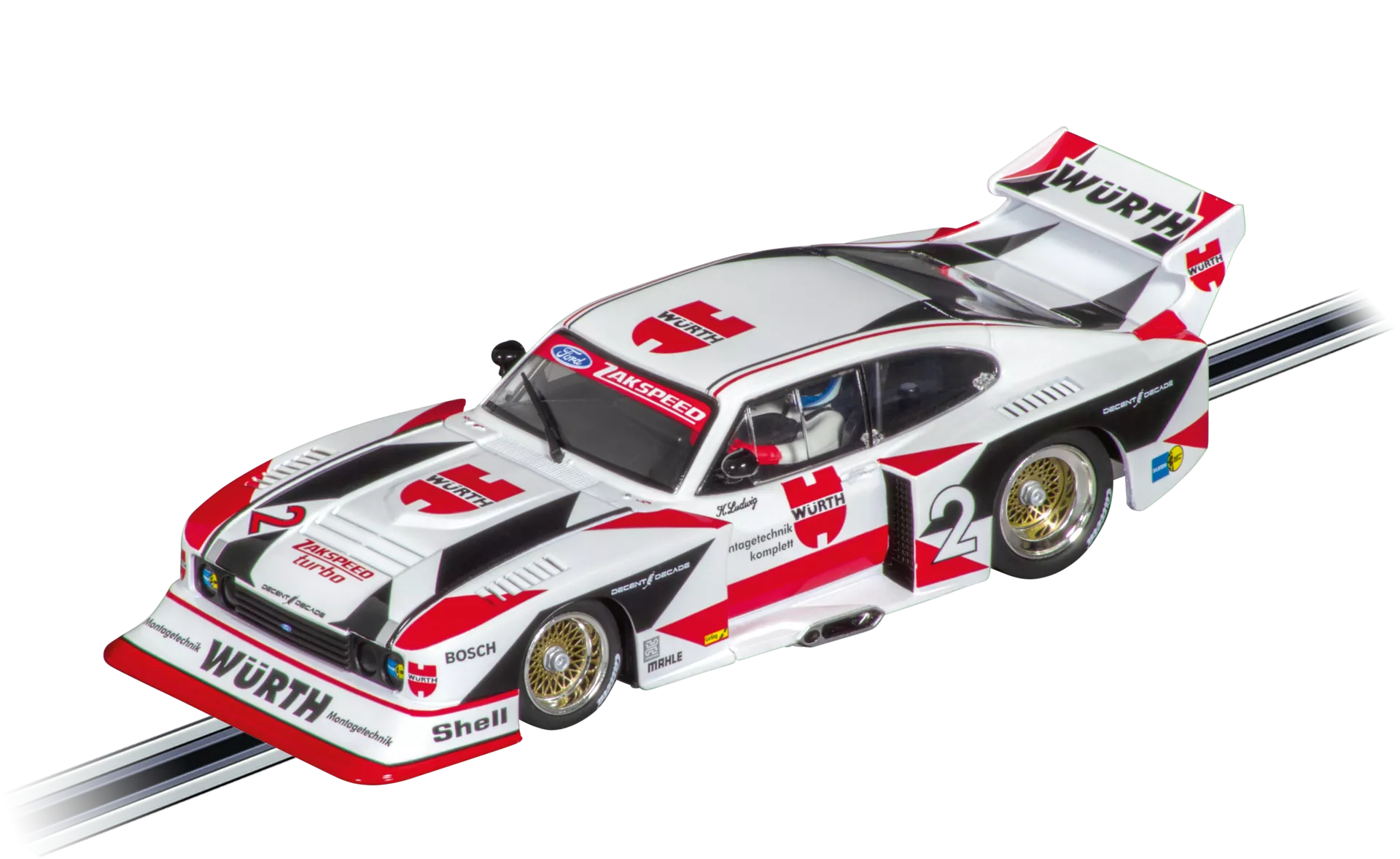 Drei einzigartige Rennlegenden gehen auf deiner 9,3 Meter Rennbahn an den Start! Das Carrera DIGITAL 132 „Retro Grand Prix” Set bringt gleich drei Legenden ihrer Zunft auf die Schienen. Der Lancia Beta Montecarlo Turbo „Lancia Martini Racing, No.3“, fuhr 1981 auf dem berühmten Kurs in Daytona. Der schicke blau-gelbe Porsche Kremer 935 K3 „No.54“ ist ein Klassiker aus der DRM, der Deutschen Rennwagen Meisterschaft, der siegreich von Klaus Ludwig gesteuert wurde. Der Ford Capri Zakspeed Turbo „Würth-Zakspeed-Team, No.2“ wurde 1982 Gesamtsieger der DRM, ebenfalls gesteuert vom legendären Klaus Ludwig.
