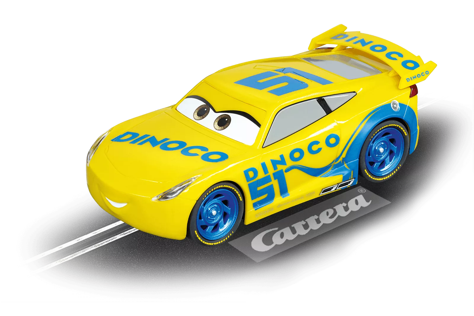 Erleben den dritten Teil der beliebten Filmreihe von Disney* Pixar mit der einzigarten Cruz Ramirez. Ursprünglich als Trainerin des legendären Lightning McQueen gelang es ihr, ihrer wahren Leidenschaft, dem fahren von Rennen nachzugehen. Inspiriert von verschiedenen Rennwagen, wie dem Ferrari F12 oder dem Camaro, reiht sich Cruz nahtlos in die Filmserie ein. In der Dinoco Lackierung, die sie nach ihrem erfolgreichen Sieg beim Florida 500 durch den neuen Sponsor bekam, kann die Rennkarriere von Cruz fortgesetzt werden. Die Codierungsmöglichkeit erlaubt es, dass sowohl Kinder als auch Erwachsene mit diesem Slotcar ihren Spaß haben.