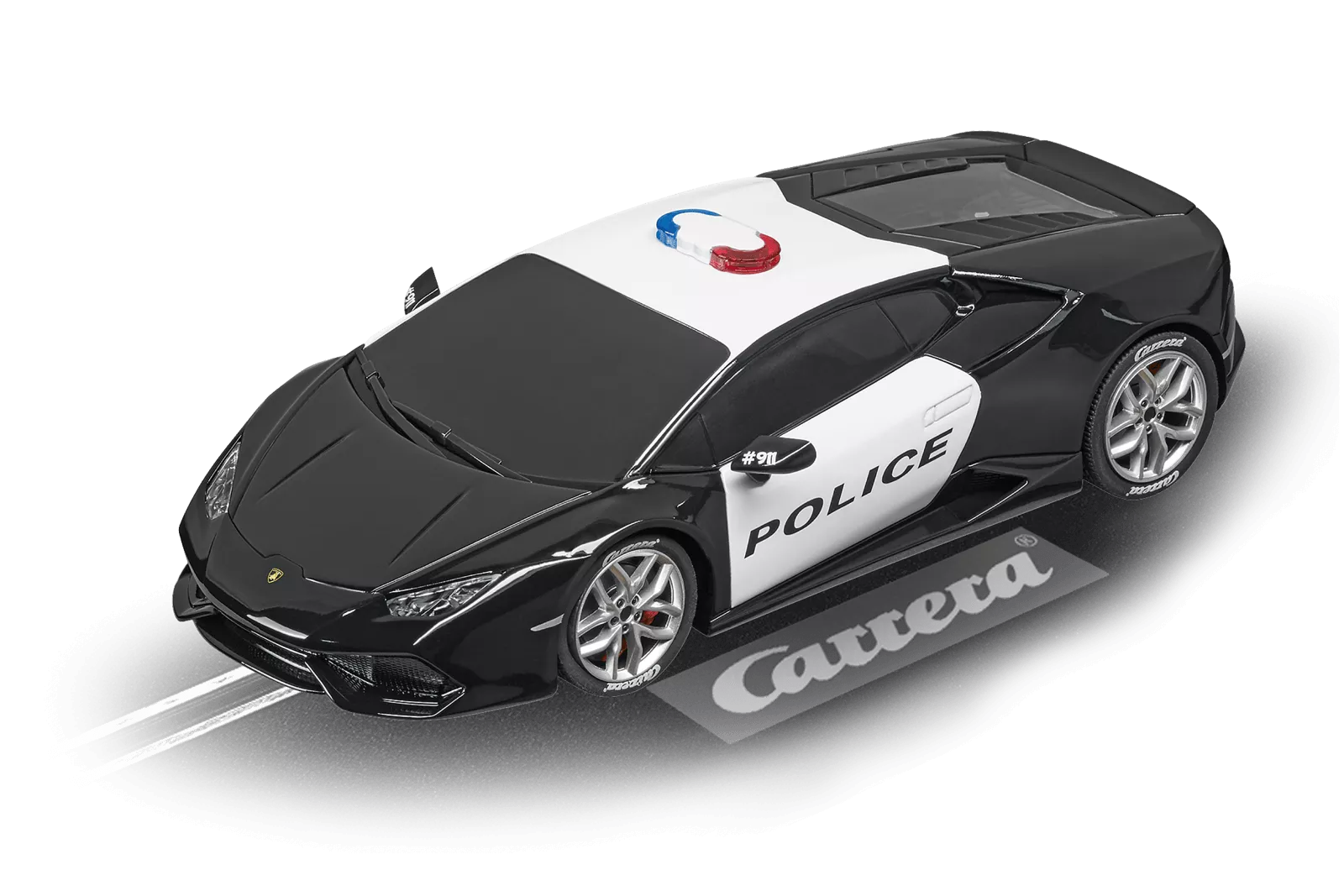 Mit dieser besonderen Ausführung als Slotcar im Design der Polizei von Florida habe Raser auf der heimischen Rennstrecke keine Chance. Dieses spezielle Aussehen verdankt es seinem großen Vorbild vom Festival of Speed 2015, wo der Huracán als Polizeiauto patrouillierte. Mit Signallicht, Frontlicht sowie Rück- und Bremslicht bringt die Jagd auf Verbrecher noch mehr Fahrvergnügen. Mit der Rennbahn Carrera DIGITAL 132 ist eine individuelle Codierung des Slotcars im Maßstab 1:32 möglich und das Carrera Auto lässt sich digital steuern. Eindrucksvoll jagt er bei der Verfolgung durch die Straßen und bahnt sich seinen Weg durch den Großstadtverkehr. Mit diesem Spitzenreiter ist den Cops der Respekt aller Herausforderer sicher!