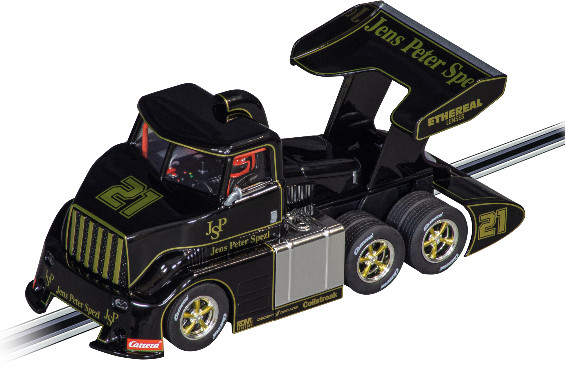 Mit dem Carrera Race Truck Conventional „Jens Peter Spezl, No.21” beweist du zu jedem Zeitpunkt, wie viel Kraft du aus dem Truck rausholen kannst. Lass dich auf das Elefantenrennen auf der heimischen Rennstrecke ein - mit dem schwarz-grauen Flitzer hast du das richtige Fahrzeug an deiner Seite. Der Truck mit seinem abgerundeten Fahrerhaus und dem großen Heckspoiler zeigt aber nicht nur in seinem Design, was er wirklich drauf hat: auch auf der Rennstrecke ist der Truck ein mächtiges Gefährt.