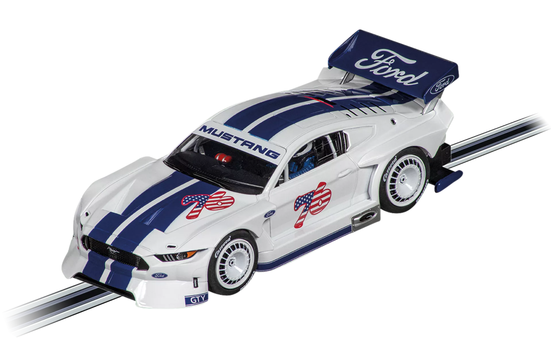 Mit dem Ford Mustang GTY „No.76“ heißt es Vollgas auf der Carrera DIGITAL 132 Autorennbahn. Der beliebte Sportwagen Ford Mustang wird seit 1964 vom amerikanischen Automobilhersteller Ford gebaut und ist seitdem ein großer Fanfavorit. Das GTY-Modell mit seinem unglaublichen 5 Liter V8-Motor bringt bis zu 710 PS auf die Piste und ist damit ein echtes Kampftier auf der Rennstrecke. Bei Carrera steht jetzt auch der Traumwagen Ford Mustang GTY mit der Startnummer 76 an der Startlinie.