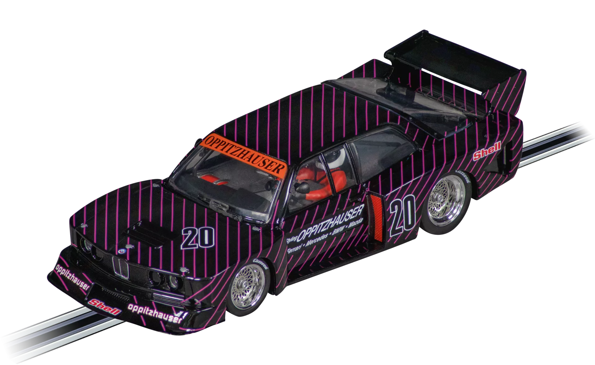 Der BMW 320 Turbo Flachbau „Oppitzhauser, No. 20“ bietet authentisches Fahrverhalten und liegt perfekt in jeder Kurve. Auf der Carrera DIGITAL 132 Autorennbahn tritt er gegen bis zu 5 weitere Gegner gleichzeitig an. Das Fahrzeug aus den 80er Jahren ist im Maßstab 1:32 detailgetreu angefertigt und sticht jedem Rennliebhaber sofort ins Auge. Ausgestattet mit Brems-, Front- und Rücklicht sieht er seinem Original zum Verwechseln ähnlich. Bei Carrera ist das Fahrzeug individuell codierbar und digital steuerbar.