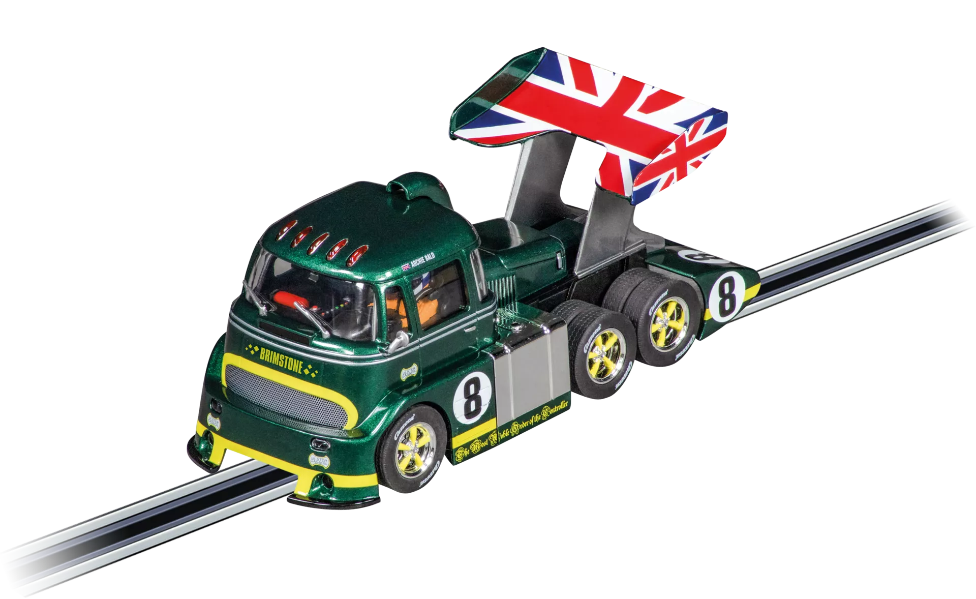 Im Rennen mit Freunden kann der Race Truck Cabover „British Racing Green, No .8” beweisen, wie viel Power in ihm steckt. Auf der digitalen Carrera Autorennbahn überzeugt der Truck mit einzigartigem Design und außergewöhnlichem Speed. Der Race Truck Cabover ist im perfekten 1:32 Maßstab gebaut und bringt voll funktionsfähige Frontlichter mit. Er kann außerdem individuell codiert und digital gesteuert werden, wodurch er ganz an persönliche Fahrkünste angepasst ist.