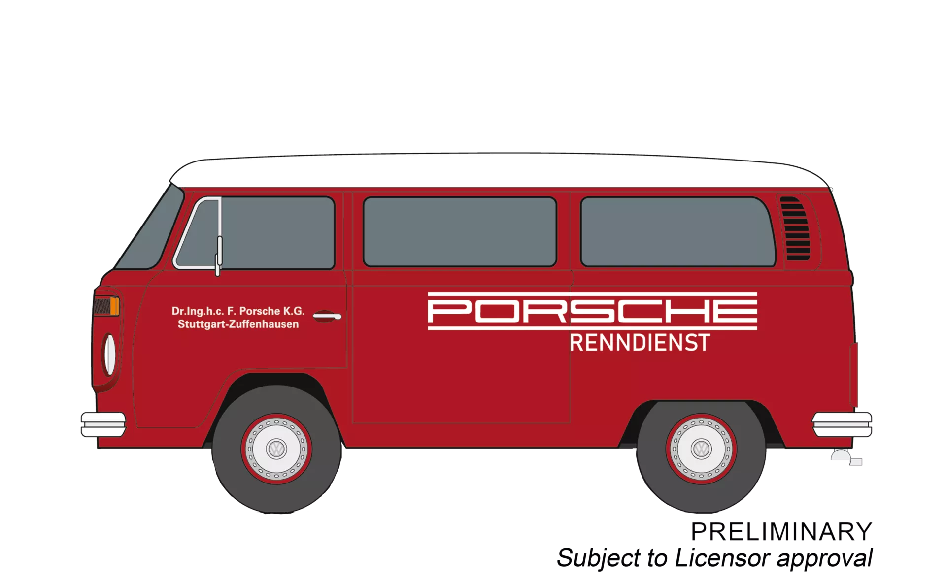 Der VW Bus T2b „Porsche Renndienst“ ist ein absolutes Universalfahrzeug für jedes Rennteam. So hat auch das Porsche Team für ihren Einsatz auf der Rennstrecke den Support von VW. Der VW Bus unterstützt das Porsche Team wohin sie auch gehen und ist als treuer Begleiter bei jedem Rennen an ihrer Seite.