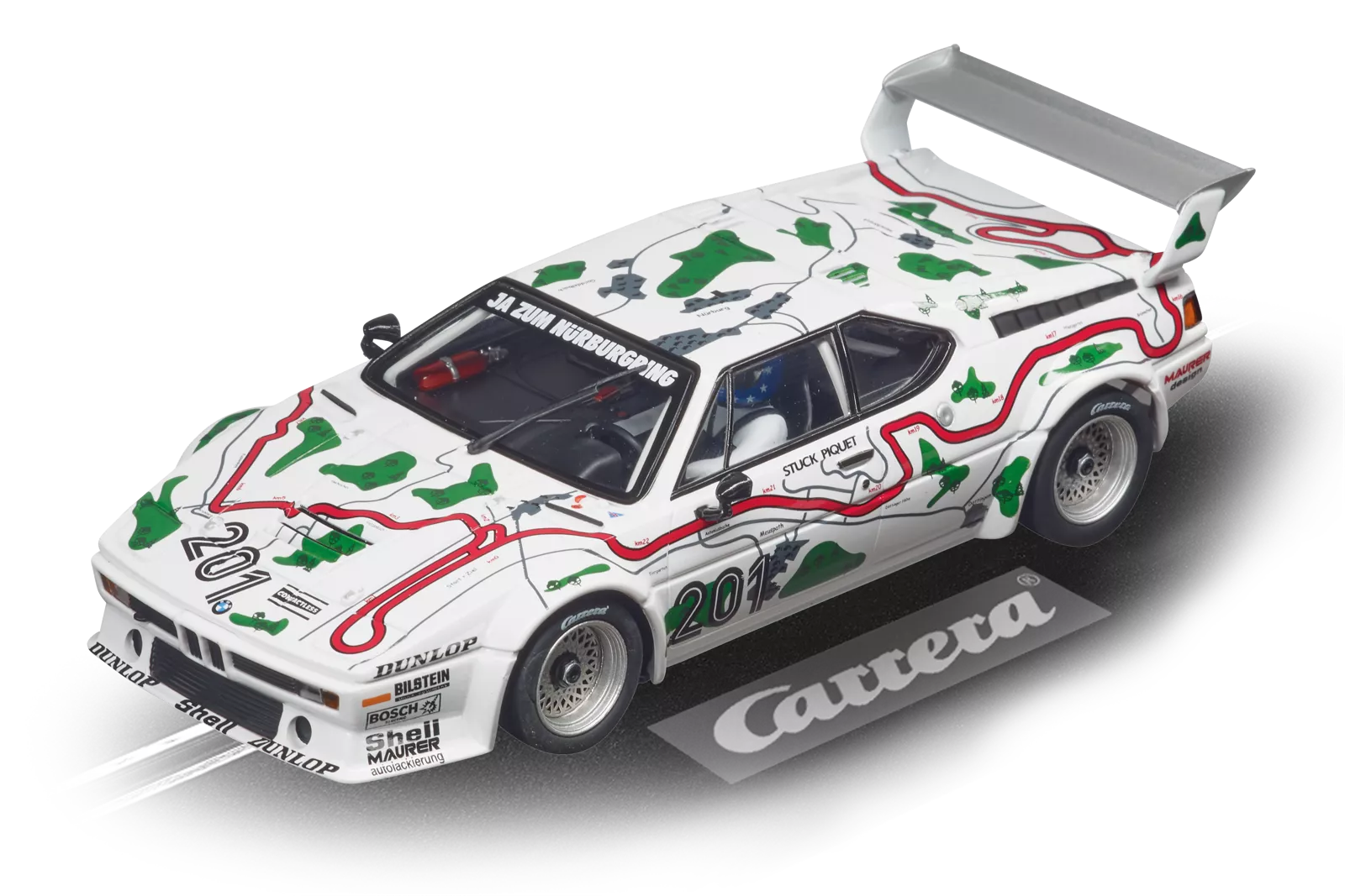 1980 fand das legendäre 1000km-Rennen am Nürburgring statt, bei dem das BMW M1 Procar mit der Nummer 201 an den Start ging. Die Fahrer Hans Stuck und Nelson Piquet holten dabei Höchstleistungen aus dem Fahrzeug heraus. Das Besondere an diesem Rennwagen ist neben Top-Speed vor allem sein besonderes Design. Dieses bildet die Strecke des Nürburgrings ab, die vom ehemaligen britischen Formel-1-Piloten Sir John Young Jackie Stewart als „Grüne Hölle" bezeichnet wurde und diesen Namen bis heute behalten hat.