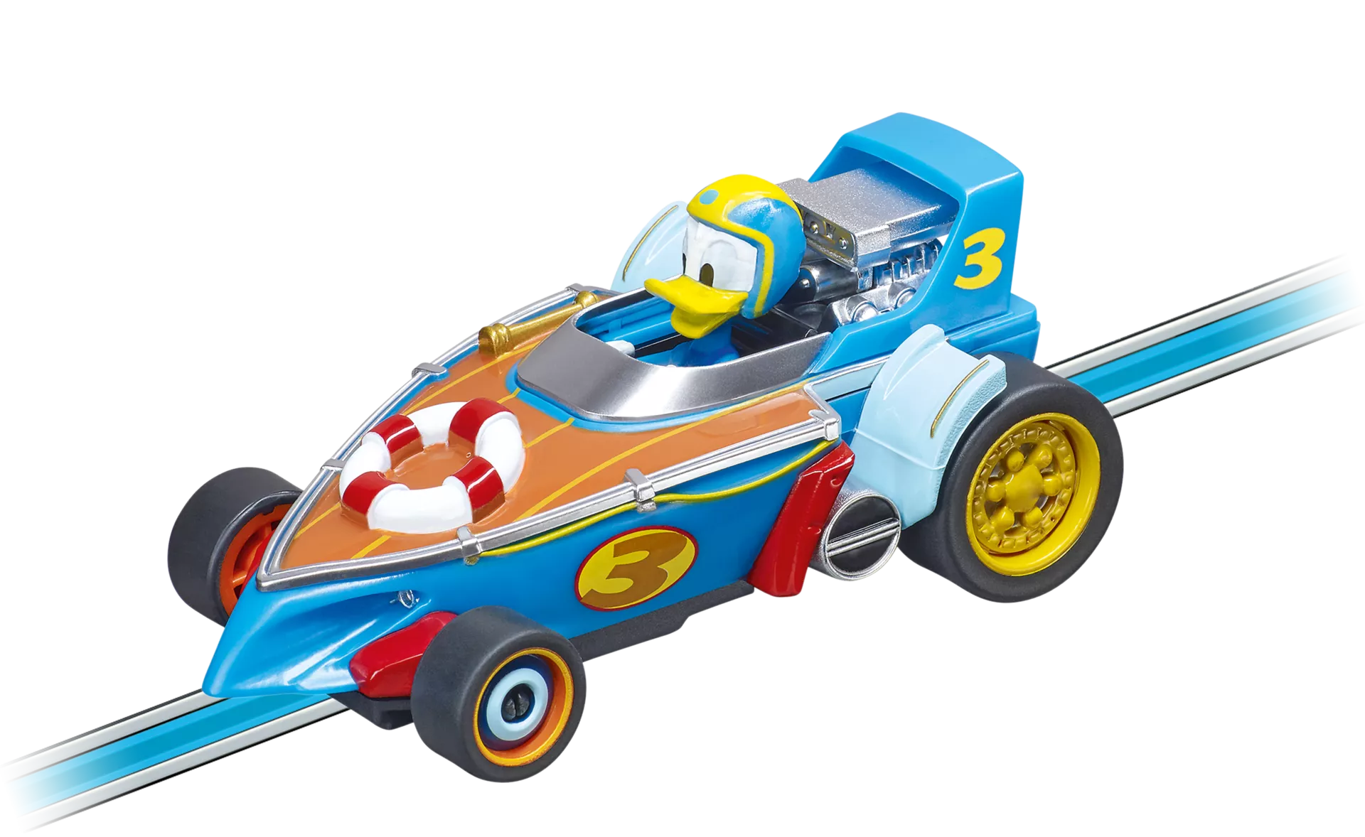 Die beiden Freunde Mickey und Donald kommen in dein Kinderzimmer! Mit dem Carrera FIRST „Mickey – Fun Race“ Set flitzen die beiden Kids-Allstars über deine 2,4 Meter lange, blaue Spielbahn. Die besonders bunte Bahn und die detailgetreuen Spielzeugautos überzeugen dank Originallizenz auf jeden Fall!