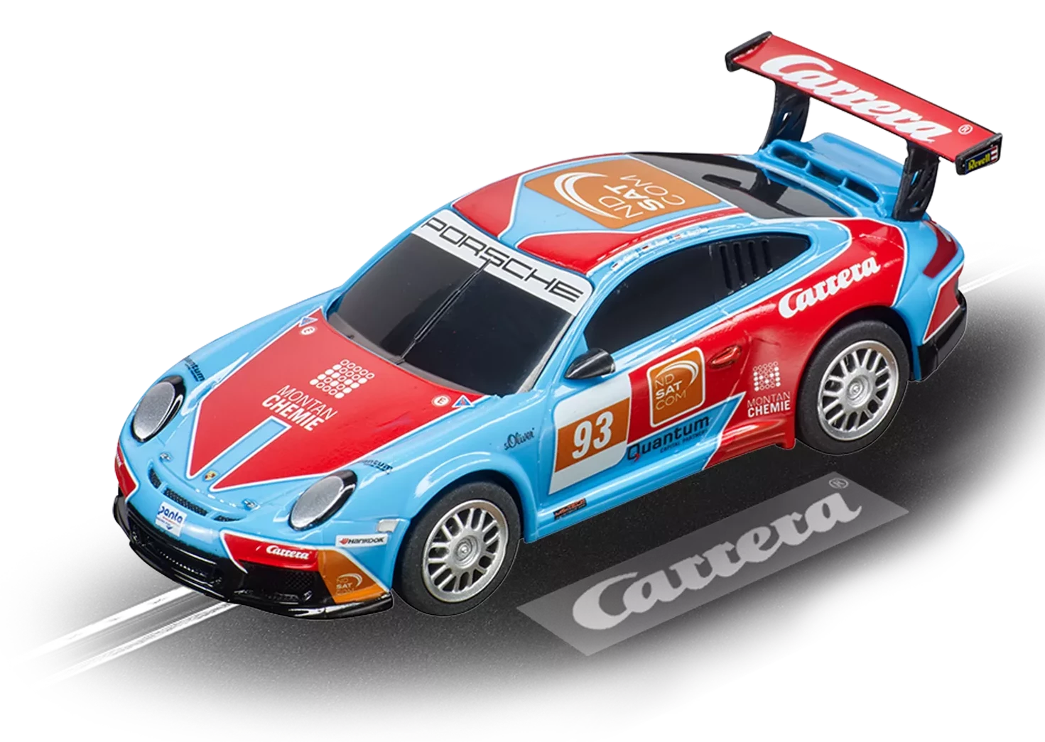 Ein eleganter Klassiker: Der Porsche 997 GT in „Carrera blue" ist aerodynamisch geschnitten, stilvoll und hat zudem richtig viel Power unter der Haube. Der Porsche im modernen rot-blauen Design und der Startnummer 93 sorgt auf deiner Carrera GO!!! Rennbahn für klare Verhältnisse!
