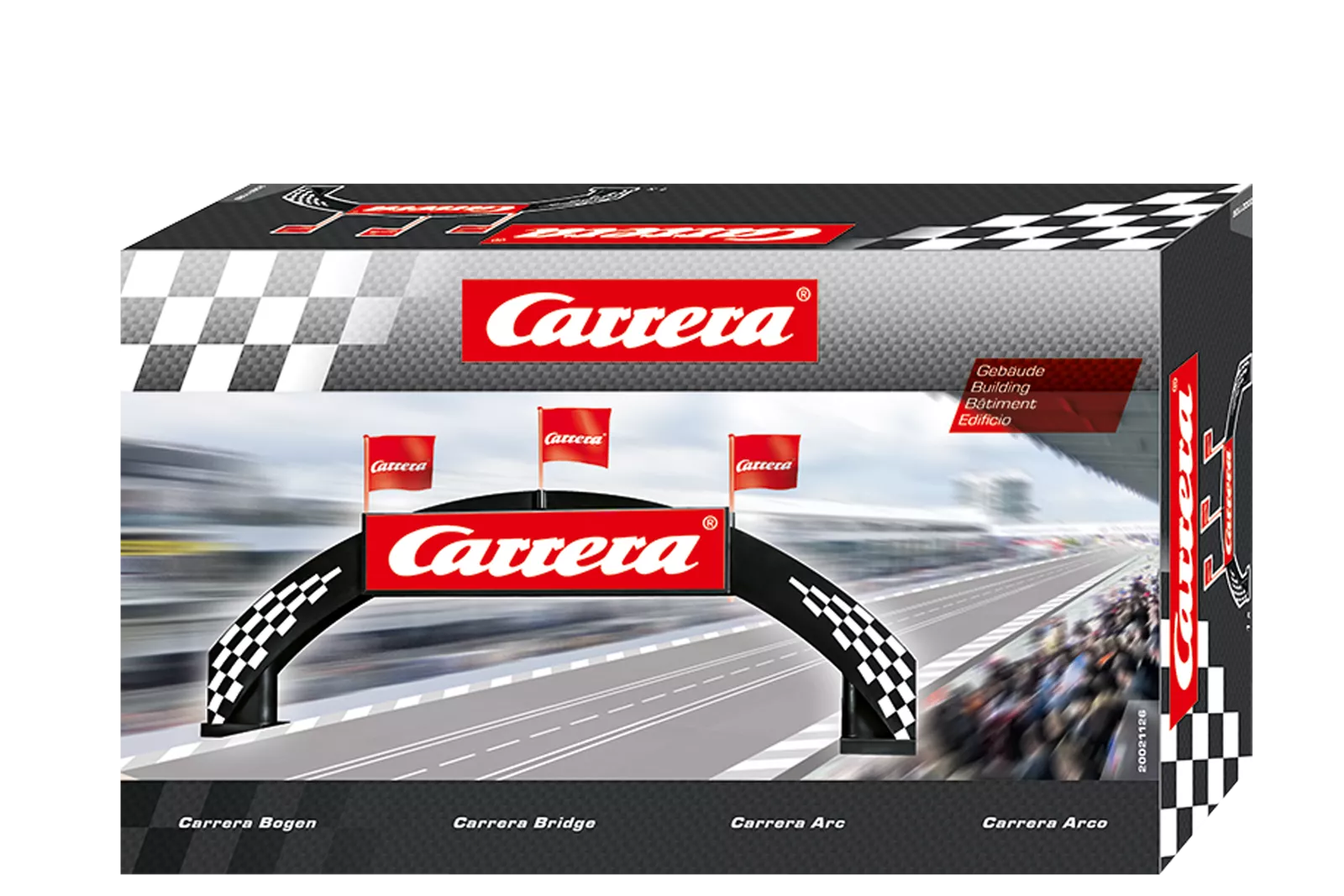 Neben beeindruckenden Boliden, jubelnden Zuschauern und fleißigem Streckenpersonal darf natürlich auch die Dekoration auf der Rennbahn nicht zu kurz kommen. Mit dem Carrera Bogen kannst Du Start und Ziel markieren oder einfach mitten auf der Strecke für einen Hingucker sorgen. Die Teile des Bogens lassen sich ganz leicht zusammenstecken und aufbauen. Beim Aufbau hast Du die Wahl zwischen zwei Spuren inklusive Randstreifen oder vier Spuren exklusive Randstreifen. Abgerundet wird das tolle Dekoelement von Fähnchen, Carrera Stickern und Schildern - probiere es doch mal aus und überzeuge Dich selbst! Und hier noch ein Basteltipp: Mit einer LED-Beleuchtung unter dem Bogen kommt das Dekoelement noch besser zur Geltung. Rennen im Dunkeln werden so zum absoluten Highlight.