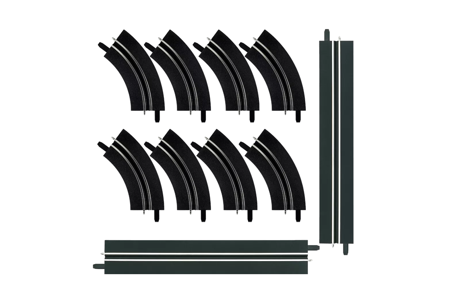 Du möchtest mehr Abwechslung auf Deine Rennstrecke bringen und Deine Carrera Bahn erweitern? Dann solltest Du Dir dieses Ausbauset unbedingt genauer ansehen! Das Set beinhaltet acht einspurige Kurven und vier einspurige Geraden. Die Schienen haben eine Länge von 342 mm und eine Breite von 10 mm. Geeignet sind die Streckenelemente für die Carrera GO!!!, GO!!! Plus und DIGITAL 143 Bahn. Beim Ausbau der Rennbahn kannst Du Deiner Kreativität und Fantasie freien Lauf lassen. Die Schienen lassen sich nämlich ganz einfach ineinanderstecken, so dass Du Deine Carrera Bahn nach Belieben umbauen und eine komplett neue Rennstrecke kreieren kannst. Lass Dich von der faszinierenden Carrera Welt begeistern und erlebe realistisches Rennsportfeeling im heimischen Wohnzimmer!