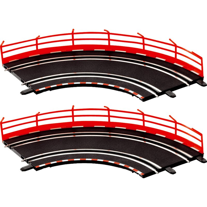Kurven sind dafür geeignet, dass es dort etwas wilder zur Sache geht. Übermütig zu viel Gas gegeben, schon fliegt das Slotcar aus seiner Spur und landet neben der Rennstrecke. Ärgerlich, wenn man dann jedes Mal das Auto auf dem Boden suchen muss. Damit so etwas nicht mehr passiert kannst Du einfach diesen praktischen Fangzaun am Streckenrand anbringen. Schleudert das Fahrzeug aus der Bahn, prallt es dort ab und kann in Bruchteilen von Sekunden wieder einsatzbreit auf die Spur gesetzt werden. In diesem Set sind insgesamt 10 Fangzäune enthalten, die für Rennstrecken im Maßstab 1:43 geeignet sind. Die Fangzäune sollten nicht an Steilkurven angebracht werden. Schienenteile nicht enthalten.