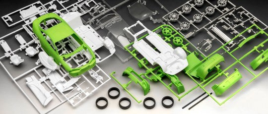 Kunststoffmodellbausatz (nicht zusammengebaut), Bebilderte, mehrsprachige Bauanleitung, Abziehbilder