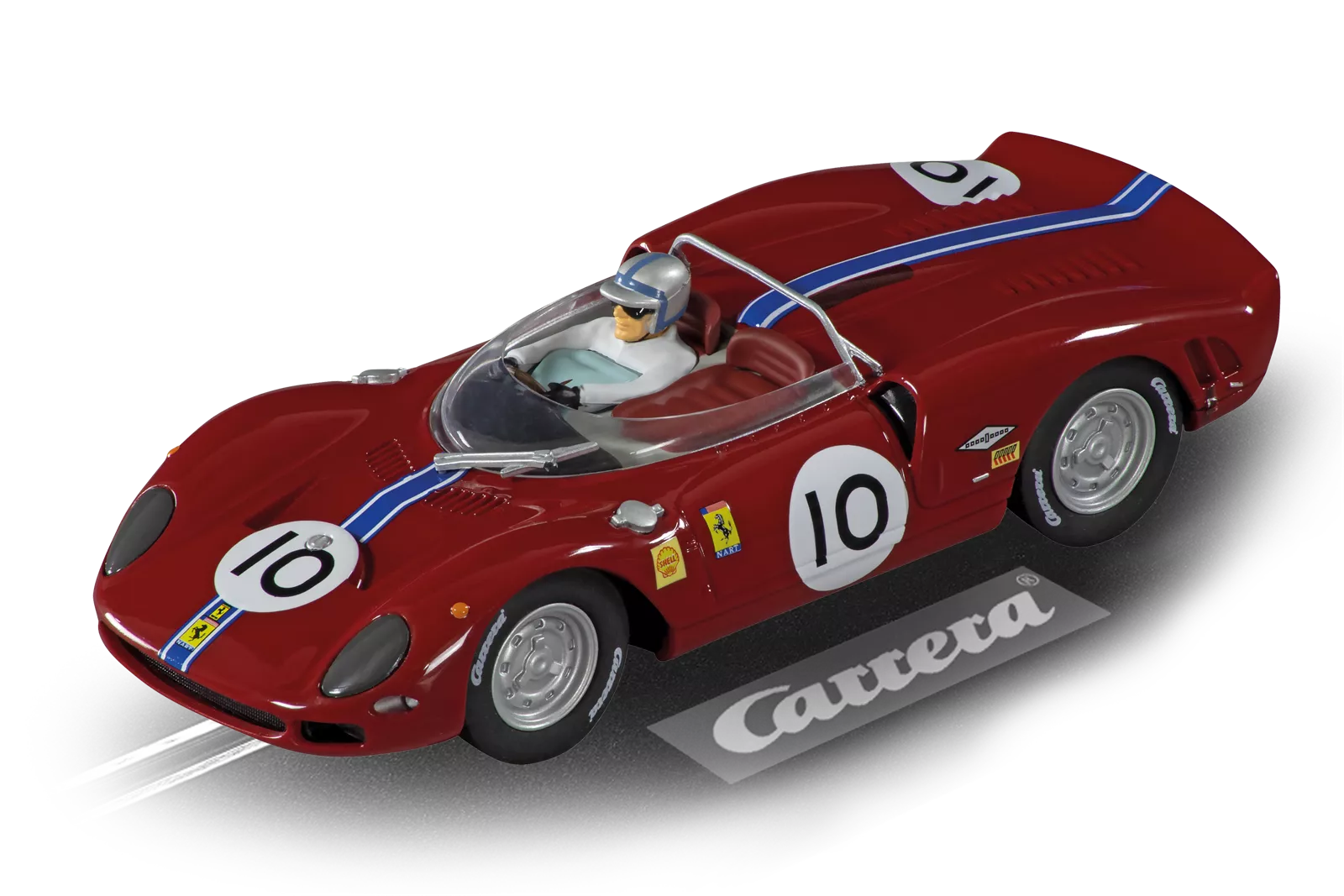 Der Ferrari 365 P2 „No.10" ist ausgestattet mit Rück- und Bremslicht und beeindruckt durch die originalgetreue Verarbeitung. Das typische Ferrari Rot macht das Fahrzeug zum Kultauto auf deiner Carrera Rennbahn. Das Carrera Auto mit Ferrari Lizenz ist individuell codierbar, digital steuerbar und bietet echten Fahrspaß auf der heimischen Rennstrecke.