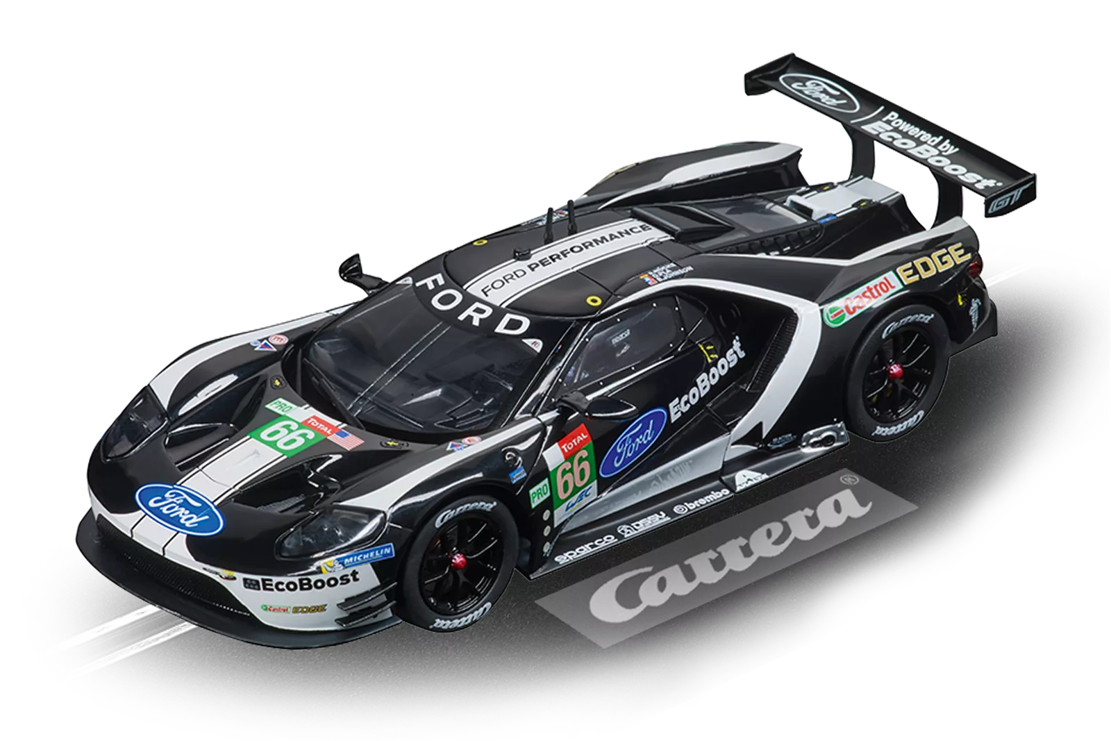 Dieser Supersportler mit Monocoque und Aluminiumrahmen beschleunigt den ausgewählten Besitzer auf bis zu 347 km/h. Der Twinturbo V6 leistet in der normalen Version 656 PS. Die Neuauflage der Ford-Renn-Ikone sollte 2016 beim härtesten Langstreckenrennen der Welt den Porsches und Audis in der GTE Pro Klasse ordentlich einheizen - genau 60 Jahre nach dem ersten Ford-Sieg. Das Slotcar ist mit Front-, Rück- und Bremslicht ausgestattet. Das Auto ist digital steuerbar, aber auch analog einsetzbar und lässt sich zusätzlich individuell codieren. Dieses Auto sorgt für einmalige Action, fulminante Überholmanöver und Spaß der Extraklasse auf jeder Carrera-Rennstrecke.