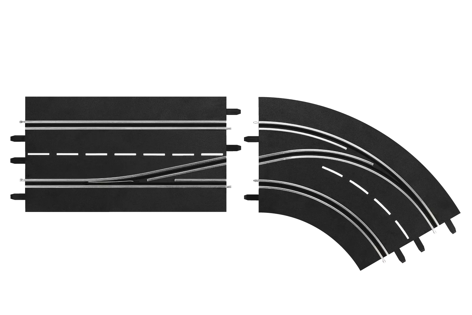 Mit diesem Ausbauset kannst Du für einen Extra-Kick in Deinem Rennen sorgen. Mit der Spurwechselkurve können die Slotcars auf die andere Spur wechseln und ihr Rennen dort fortsetzen. Schaffst Du es Dein Auto dann vor das gegnerische Auto zu setzen, bist Du erstmal im Vorteil, weil er nicht mehr an Dir vorbeikommt. Aber pass auf! Bei einem Spurwechsel kann es auch immer zu einem Crash kommen. Wähle den geeigneten Zeitpunkt und verschaffe Dir so einen Vorteil im Kampf um den Titel. Die Spurwechselkurve besteht aus zwei Schienenteilen und ist für die digitalen Rennbahnen Carrera DIGITAL 124 und Carrera DIGITAL 132 oder die digital nachgerüstete Carrera EVOLUTION im Maßstab 1:24 geeignet.