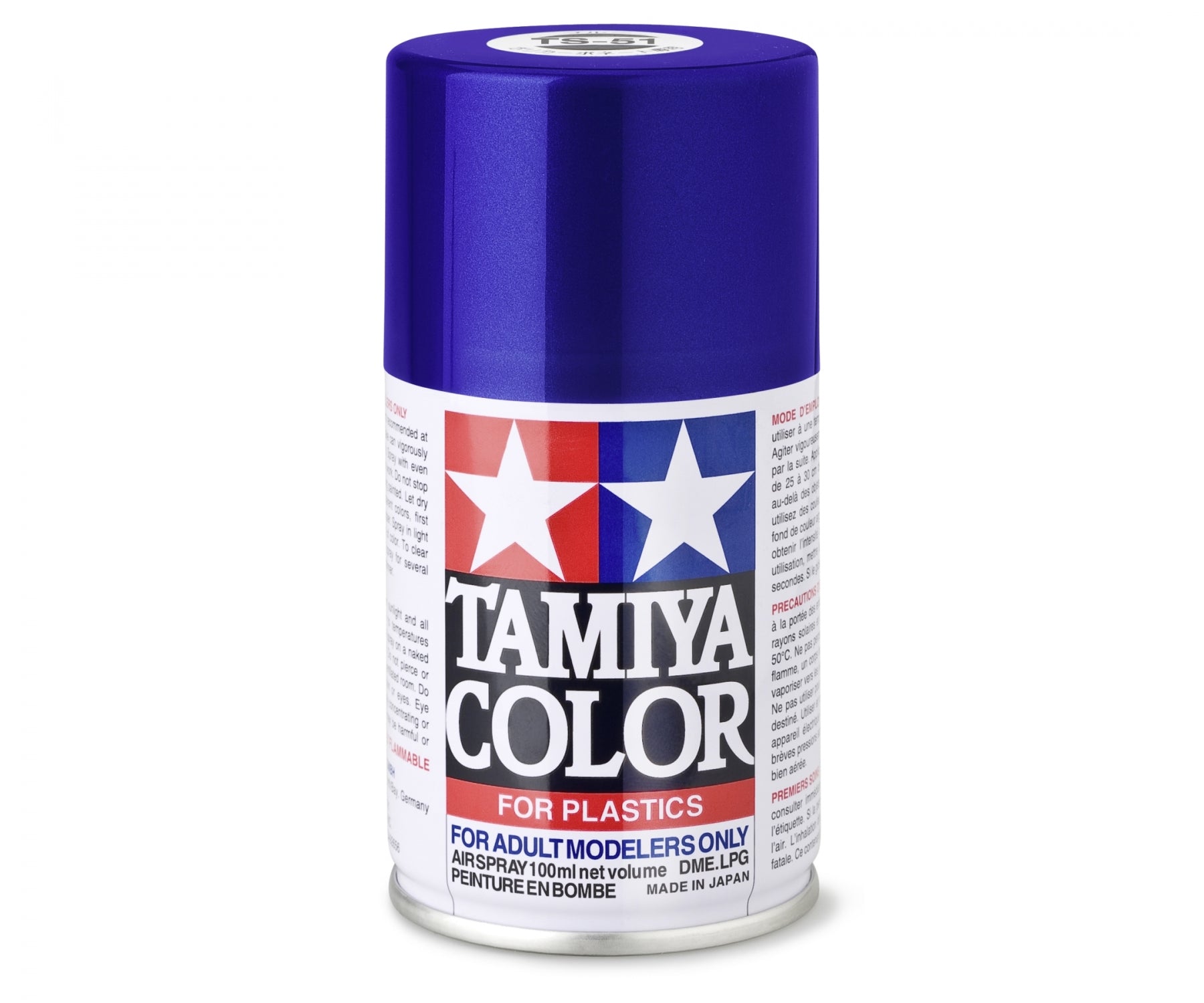 Dieses Farbspray ist sehr handlich und zufolge seines Inhalts und seiner Größe zum Spritzen von Modellen geeignet. Da auf Lackbasis hergestellt, ist seine Trocknungszeit kurz. Die Dose enthält 100 ml. Damit können 2 - 3 Karosserien von Automodellen im Maßstab 1:24 gespritzt werden.Tamiya-Farbsprays werden durch Acryl- oder Emailfarben nicht angegriffen. Nach dem Spritzen der ganzen Modelloberfläche mit Farbspray können Details mit Acryl oder Emailfarben bemalt werden. Durch die Kombination dreier Arten von Anstrichen lassen sich farbenfrohe Anstriche einfach und zuverlässig
